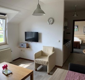 Alle appartementen zijn voorzien van een keuken met magnetron,oven, nespresso automaat, broodrooster en waterkoker, Luxe regen douche, toilet en 1 of 2 slaapkamers met boxsprings voorzien van dekbedden, een ruime woonkamer met lcd tv, radio met cd speler. De appartementen op de begane grond hebben een terras voor de deur en de appartementen op de eerste verdieping (makkelijke loopbare trap) kunnen overal in onze tuin gebruik maken van de zitjes.